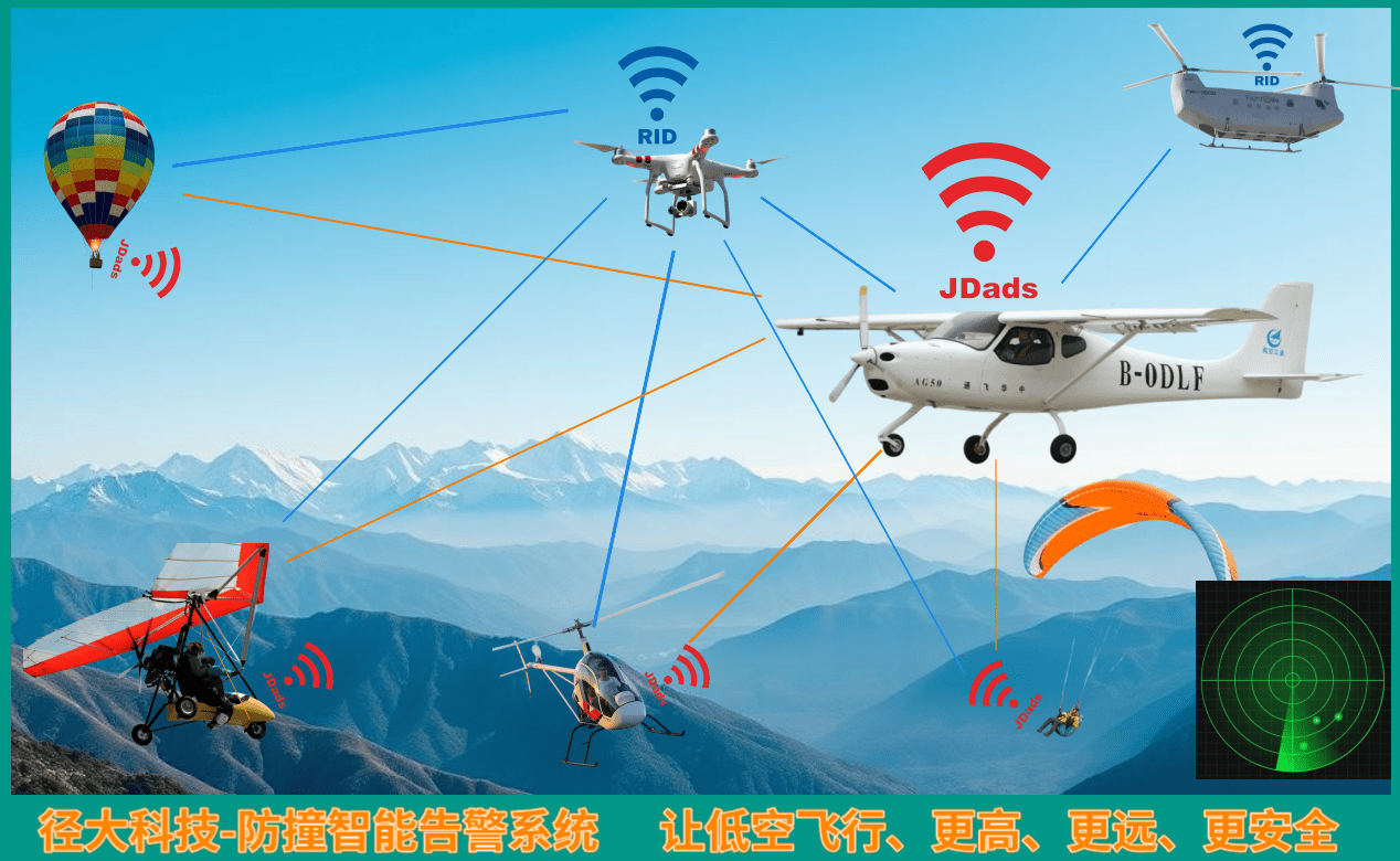 在这里,安全不再局限于单一设备,而是构建于互联互通的网络之上。开放低空飞行安全网络以径大科技JDads系列设备(包括JDads跟踪器与JDads告警设备)为基础节点,同时积极整合并接入其他飞行物体的跟踪数据源,形成一个不断扩展、持续进化的空中安全生态。